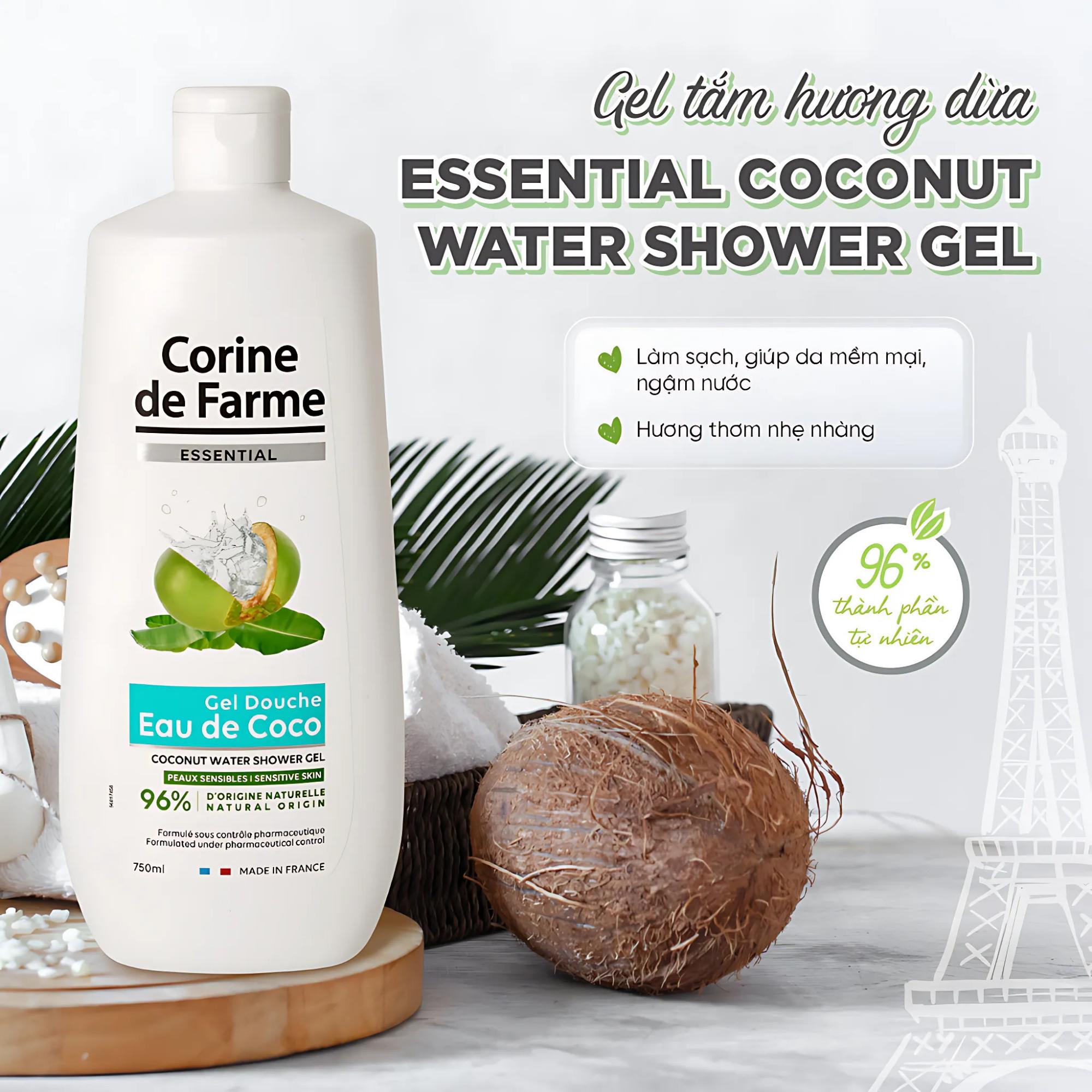 Gel Tắm Corine De Farme Essential Coconut Water là sản phẩm làm sạch da hàng ngày, được thiết kế để cấp ẩm, nuôi dưỡng và bảo vệ làn da khỏi tình trạng khô ráp. Với công thức chứa nước dừa (Coconut Water), sản phẩm không chỉ giúp làm sạch cơ thể một cách nhẹ nhàng mà còn bổ sung độ ẩm dồi dào, mang lại cảm giác tươi mới, mềm mại và hương thơm thư giãn của xứ nhiệt đới sau khi tắm.