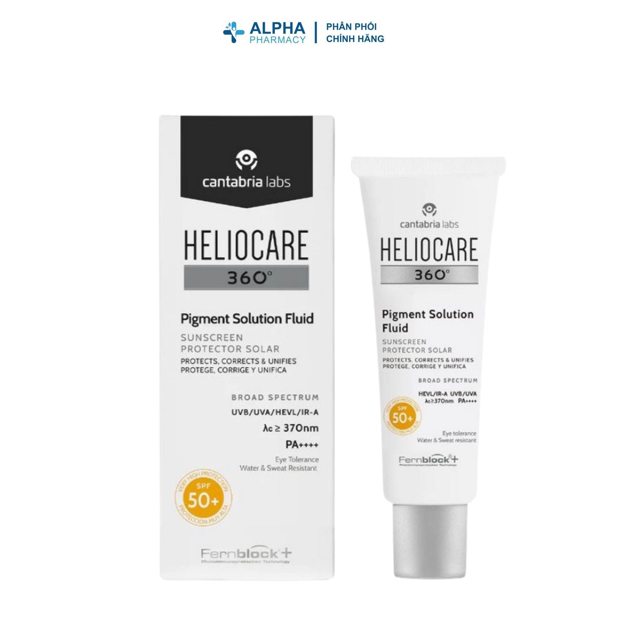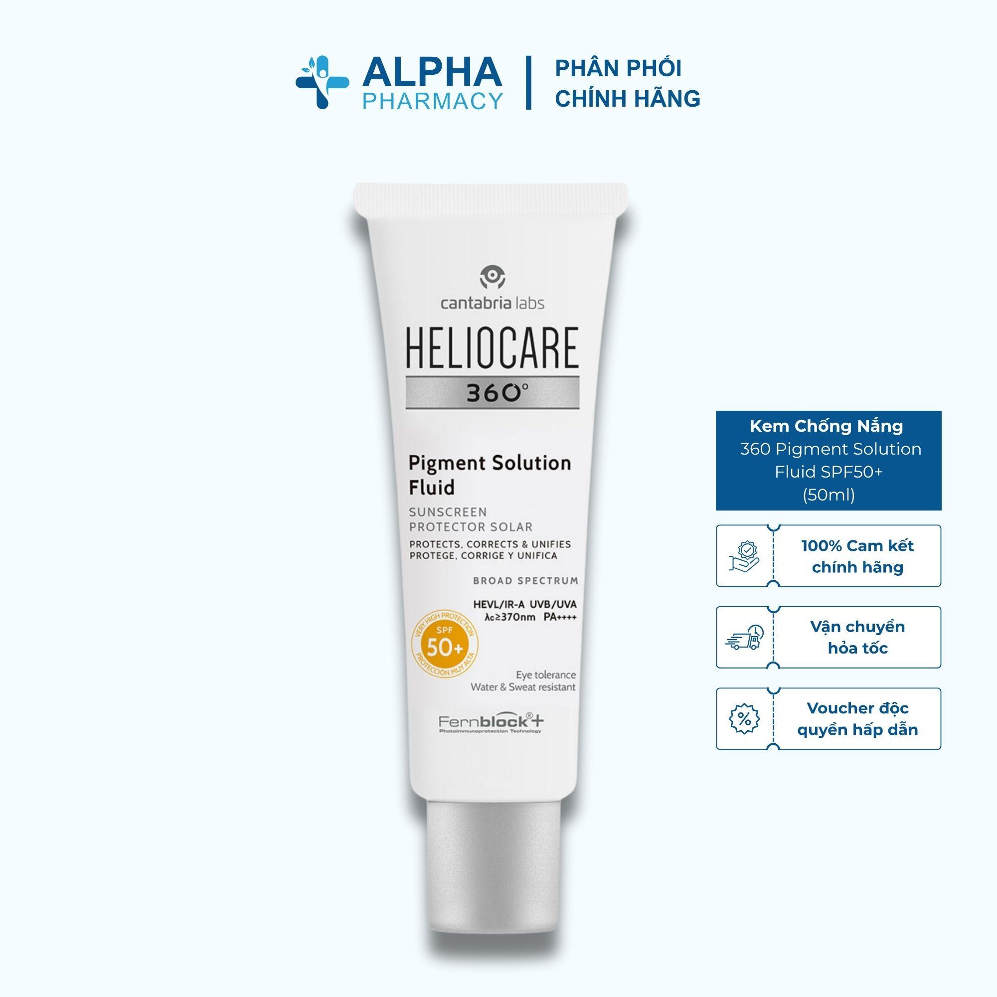 Kem Chống Nắng Heliocare 360º Pigment Solution Fluid SPF50+ Ultraligero (50ml) là một trong những dòng kem chống nắng nổi tiếng nhà Heliocare. Sản phẩm là một trong số ít dòng kem chống nắng có hệ thống chống ô nhiễm và khử sắc tố của nó giúp ngăn ngừa và điều chỉnh sự tăng sắc tố và đốm nắng.