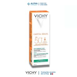 Kem Chống Nắng Vichy Capital Soleil Mattifying 3-in-1 là một sản phẩm cải tiến, được phát triển đặc biệt để đáp ứng nhu cầu của làn da dầu, da hỗn hợp sống trong môi trường ô nhiễm. Sản phẩm này tích hợp 3 công dụng vượt trội trong một: Chống nắng hiệu quả (UVB + UVA), Kiềm dầu & Giảm bóng nhờn, và Chống ô nhiễm & Bụi mịn. Với kết cấu kem lỏng nhẹ, dễ tán, sản phẩm mang lại cảm giác thoải mái và khô thoáng tức thì.
