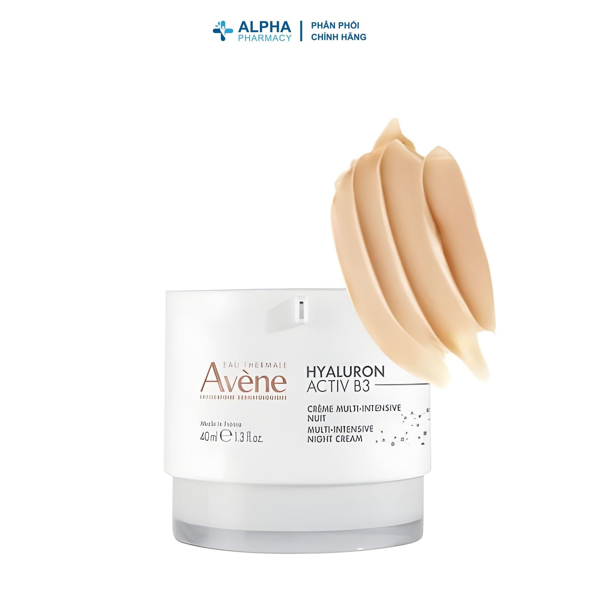 Kem Dưỡng Ban Đêm Avene Hyaluron Activ B3 Multi-Intensive Night Cream là kem phục hồi ban đêm giúp da căng mịn, săn chắc và giảm nếp nhăn sau 2 tuần nhờ các thành phần chính như Niacinamide, Hyaluronic Acid và Retinal. Kem có kết cấu nhẹ nhàng, thẩm thấu nhanh và mang lại cảm giác thoải mái cho da mà không gây nhờn rít.