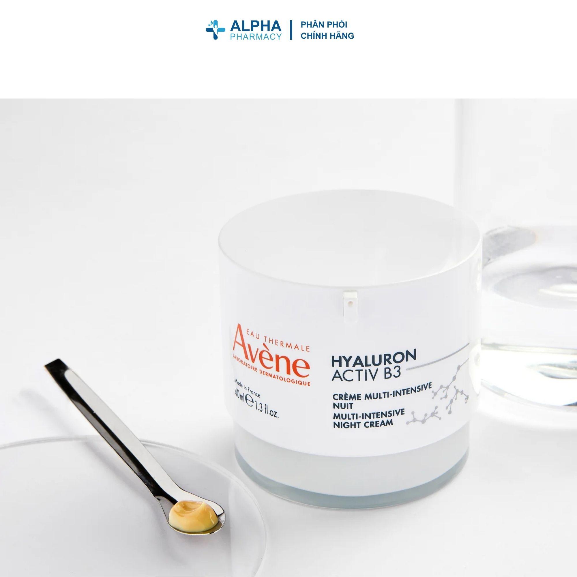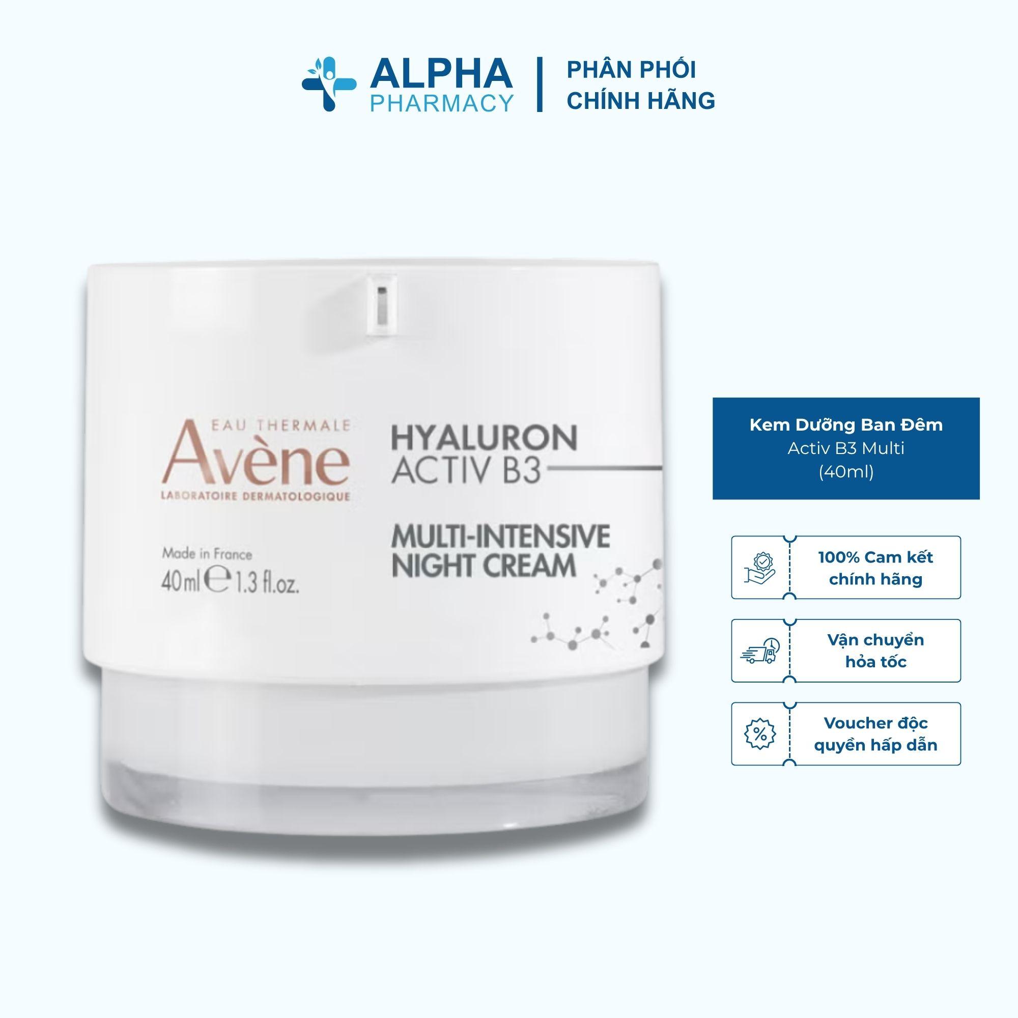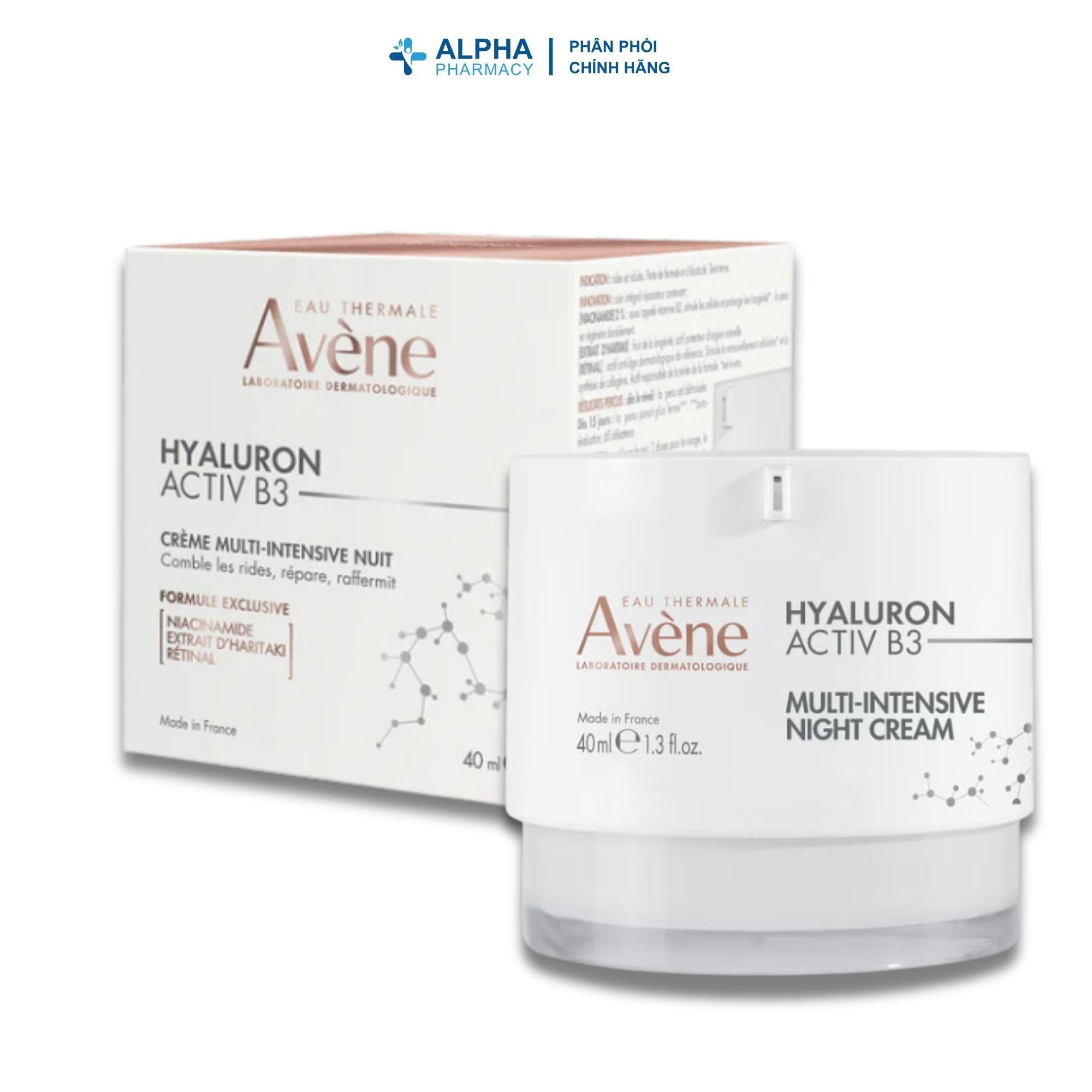 Kem Dưỡng Ban Đêm Avene Hyaluron Activ B3 Multi-Intensive Night Cream là kem phục hồi ban đêm giúp da căng mịn, săn chắc và giảm nếp nhăn sau 2 tuần nhờ các thành phần chính như Niacinamide, Hyaluronic Acid và Retinal. Kem có kết cấu nhẹ nhàng, thẩm thấu nhanh và mang lại cảm giác thoải mái cho da mà không gây nhờn rít.