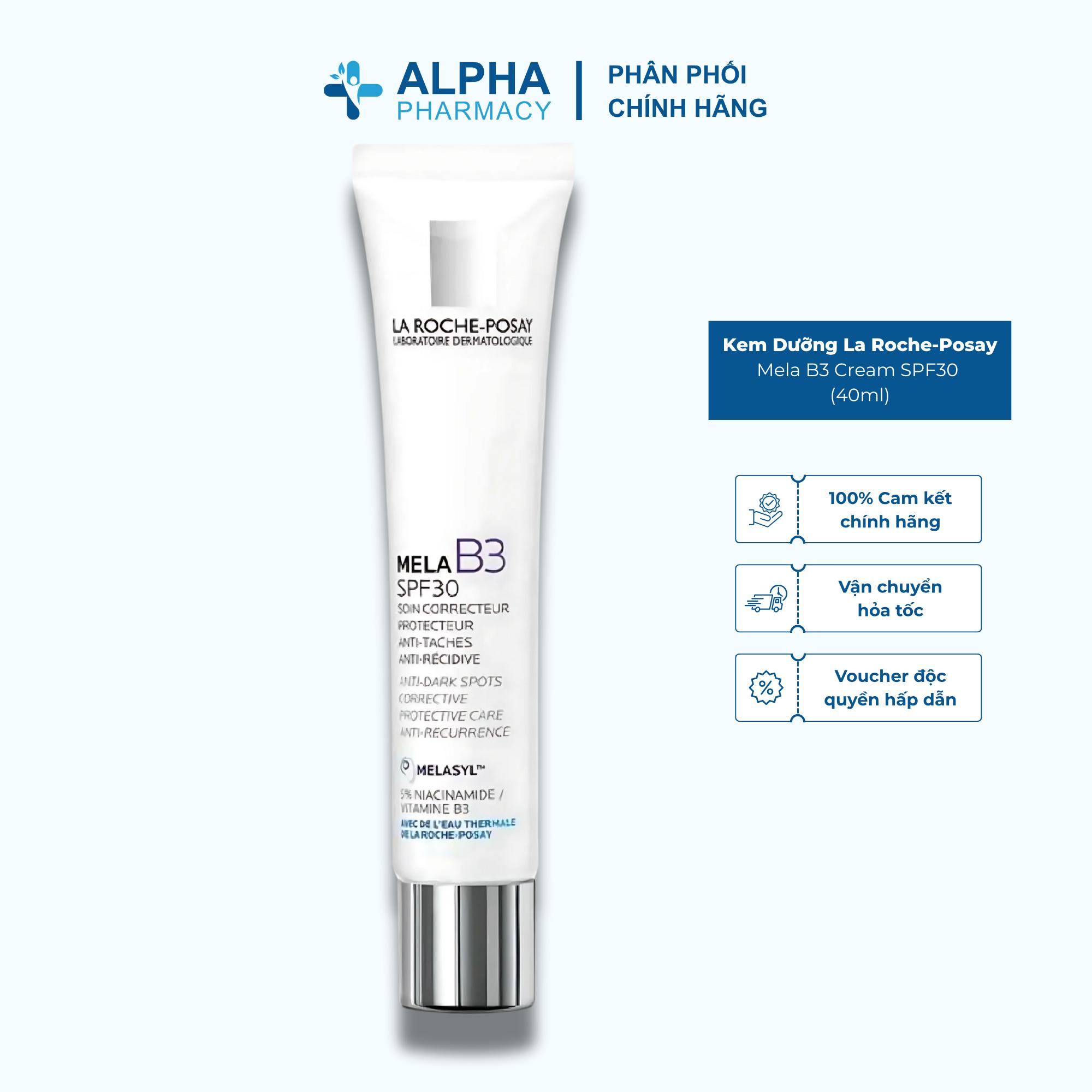 Kem Dưỡng La Roche-Posay Mela B3 Cream SPF30 Giảm Thâm Nám & Dưỡng Sáng Da – 40ml là sản phẩm kem dưỡng cải tiến đến từ thương hiệu dược mỹ phẩm hàng đầu nước Pháp, La Roche-Posay. Đây là giải pháp toàn diện cho làn da đang đối mặt với các vấn đề về thâm nám, đốm nâu và tông da không đều màu. Với sự kết hợp đột phá của hoạt chất độc quyền Melasyl cùng Niacinamide (Vitamin B3) và khả năng bảo vệ SPF30, sản phẩm giúp giảm thiểu rõ rệt các vết thâm nám hiện có, ngăn ngừa hình thành các đốm nâu mới và dưỡng sáng da hiệu quả, mang lại làn da đều màu, rạng rỡ và được bảo vệ tối ưu.