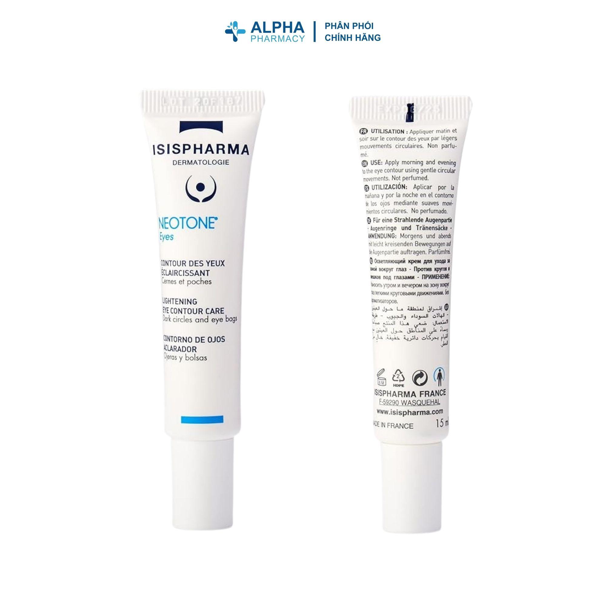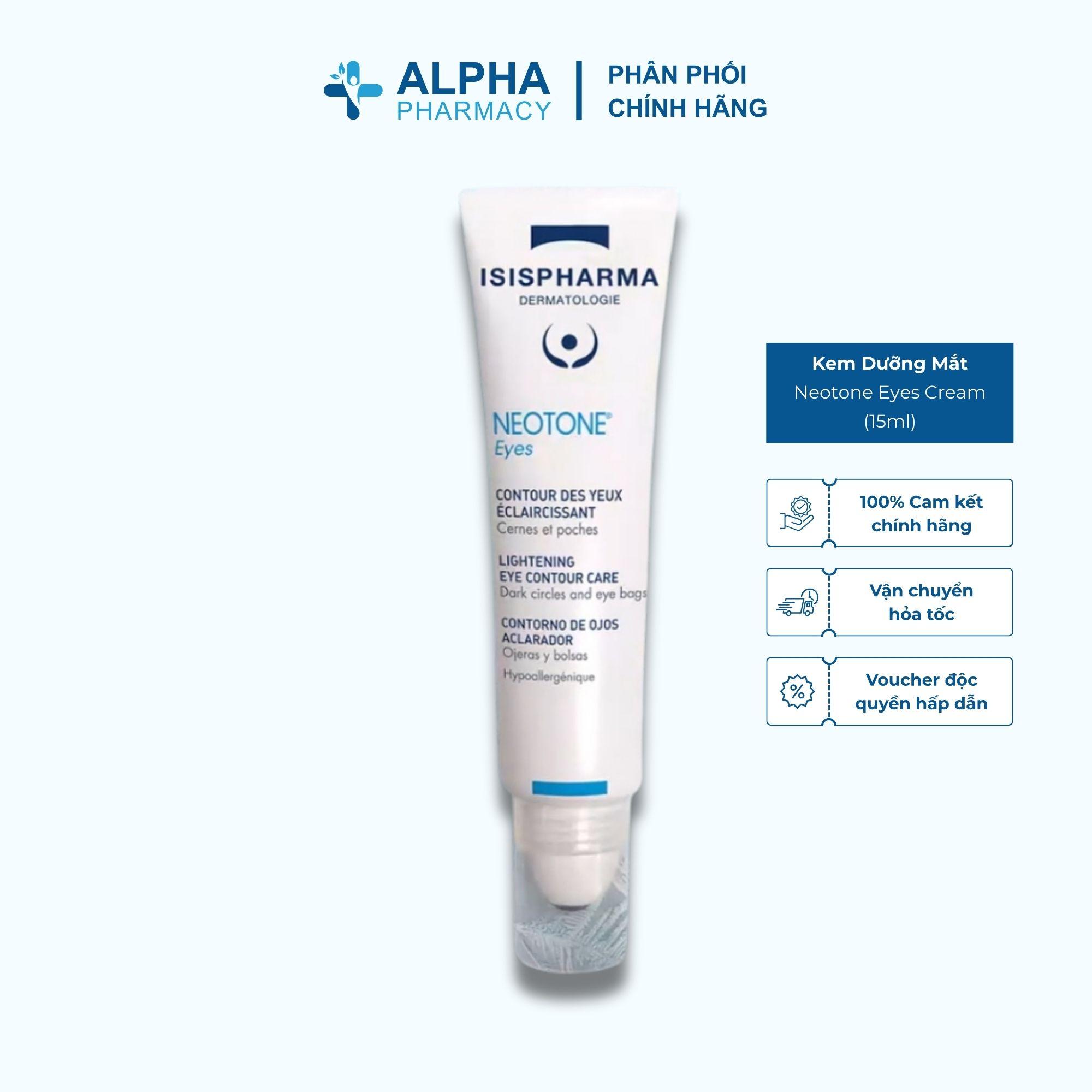 Kem Dưỡng Mắt Isis Pharma Neotone Eyes Cream 15ml là sản phẩm chăm sóc mắt giúp giảm quầng thâm và bọng mắt, dưỡng ẩm sâu và làm sáng vùng da quanh mắt nhờ các thành phần như chiết xuất tảo xoắn Chlorella Vulgaris, Tetrapeptide, Bisabolol và Hyaluronic acid. Sản phẩm có thiết kế đầu lăn giúp massage thư giãn và đưa dưỡng chất thấm sâu, thích hợp sử dụng cho da nhạy cảm.