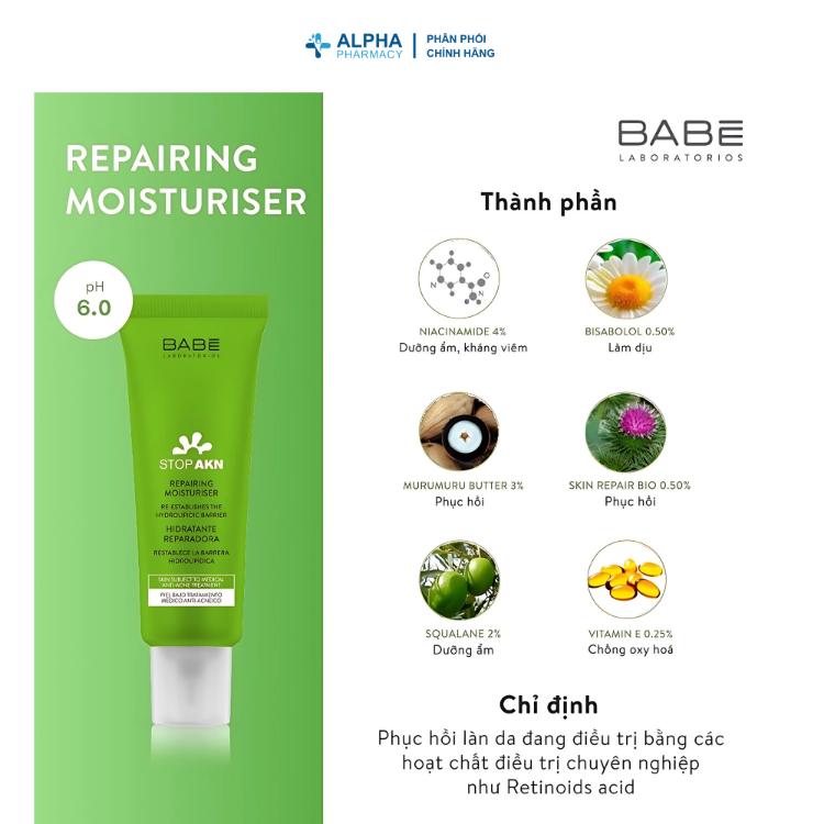 Kem Dưỡng Phục Hồi Da Mụn Babé Stop AKN Repairing Moisturiser – 50ml