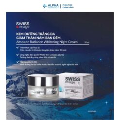 Kem Dưỡng Swiss Image Absolute Radiance Brightening Care Night Cream Làm Sáng & Mờ Thâm Nám – 50ml là kem dưỡng ban đêm chuyên sâu, được thiết kế để làm sáng da và giảm các đốm sắc tố, đến từ thương hiệu dược mỹ phẩm Swiss Image của Thụy Sĩ. Sản phẩm này là giải pháp lý tưởng cho mọi loại da, đặc biệt là da xỉn màu, không đều màu và có các vấn đề về thâm nám, đốm nâu, giúp cải thiện tông da, làm mờ thâm sạm và mang lại làn da rạng rỡ, tươi trẻ vào mỗi sáng thức dậy.