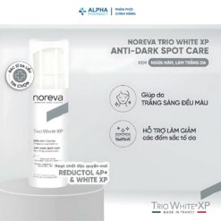 Kem Dưỡng Trắng Da & Mờ Nám Noreva Trio White XP Anti-Dark Spot – 30ml là sản phẩm kem dưỡng chuyên biệt, được bào chế để điều trị và ngăn ngừa hiệu quả các vấn đề về sắc tố da như nám, tàn nhang, đốm nâu do tuổi tác hoặc tác hại của ánh nắng mặt trời. Đến từ thương hiệu dược mỹ phẩm Noreva của Pháp, sản phẩm này mang đến giải pháp toàn diện giúp làm sáng đều màu da, làm mờ các vết thâm nám hiện có và ngăn chặn sự hình thành các đốm sắc tố mới.