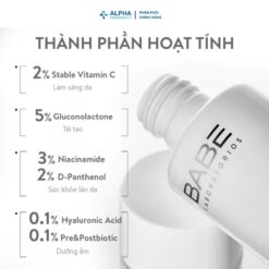- Stable Vitamin C 2% Có tác dụng chống oxy hóa, làm săn chắc và hỗ trợ làm sáng da.
