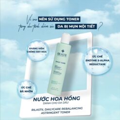Nước Cân Bằng Độ Ẩm Rilastil Daily Care Astringent Rebalancing Toner – 200ml là nước cân bằng dịu nhẹ dành cho da dầu, mụn và hỗn hợp thiên dầu. Sản phẩm này có tác dụng giữ được độ ẩm cần thiết, se khít lỗ chân lông, hạn chế tình trạng bụi bẩn tích tụ trên da gây ra các vấn đề về da, giúp da trở nên sạch, mềm mịn và thông thoáng.