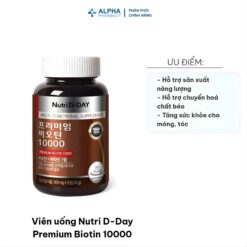 Premium Biotin 10000mcg Nutri D-Day là sản phẩm đến từ thương hiệu Nutri D-Day có khả năng ngăn ngừa rụng tóc, kích thích mọc tóc với hàm lượng Biotin lên tới 10.000mcg.