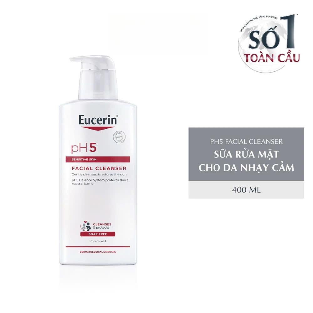 – Sữa Rửa Mặt Eucerin Cho Da Nhạy Cảm pH5 Facial Cleanser Sensitive Skin 400ml được nghiên cứu phù hợp với làn da nhạy cảm, giúp nàng làm sạch sâu bụi bẩn, bã nhờn trên da mặt, giúp lỗ chân lông khô thoáng, cải thiện tình trạng bít tắc gây mụn mà không gây kích ứng cho da.