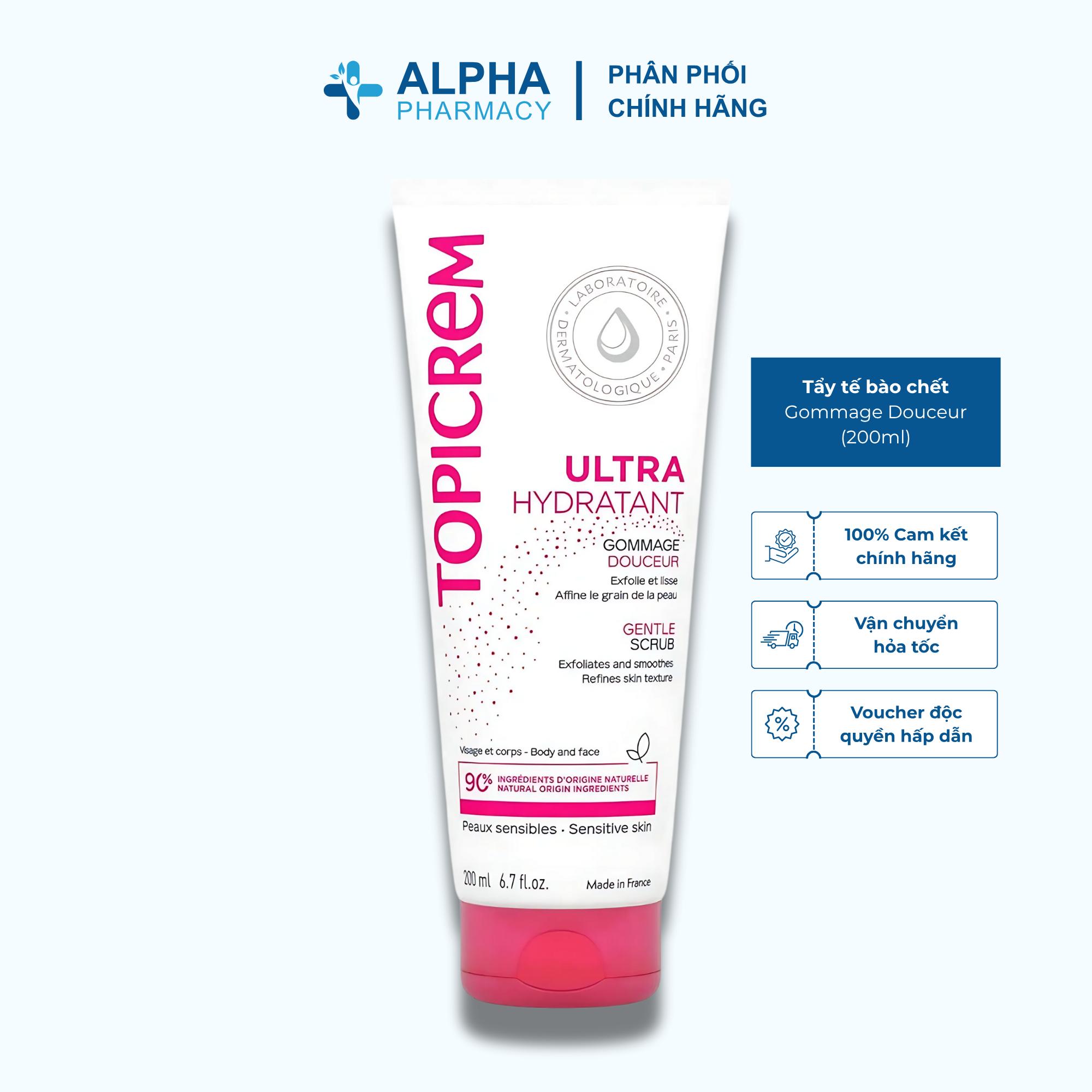 Tẩy Tế Bào Chết Dưỡng Ẩm Topicrem Ultra Hydratant Gommage Douceur là một sản phẩm tẩy da chết dịu nhẹ, được thiết kế đặc biệt cho da khô và da nhạy cảm, giúp loại bỏ tế bào chết và dưỡng ẩm cho da. Dung tích của sản phẩm là 200ml.