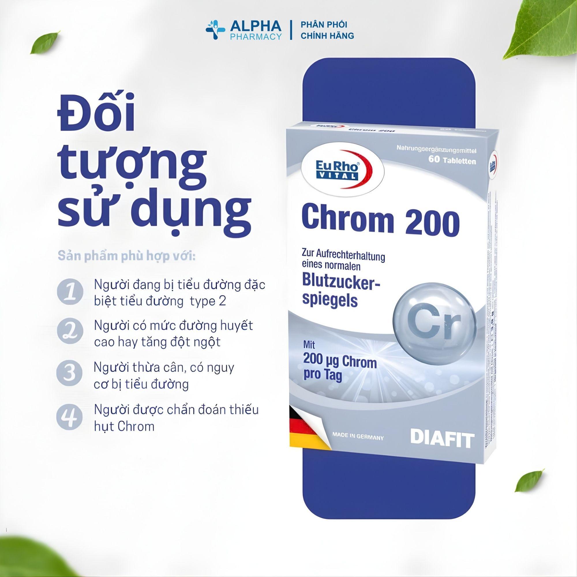 Thực Phẩm Bảo Vệ Sức Khỏe Eurho Vital Chrom 200 Cải Thiện Độ Nhạy Insulin, Giảm Tình Trạng Cao Huyết Áp