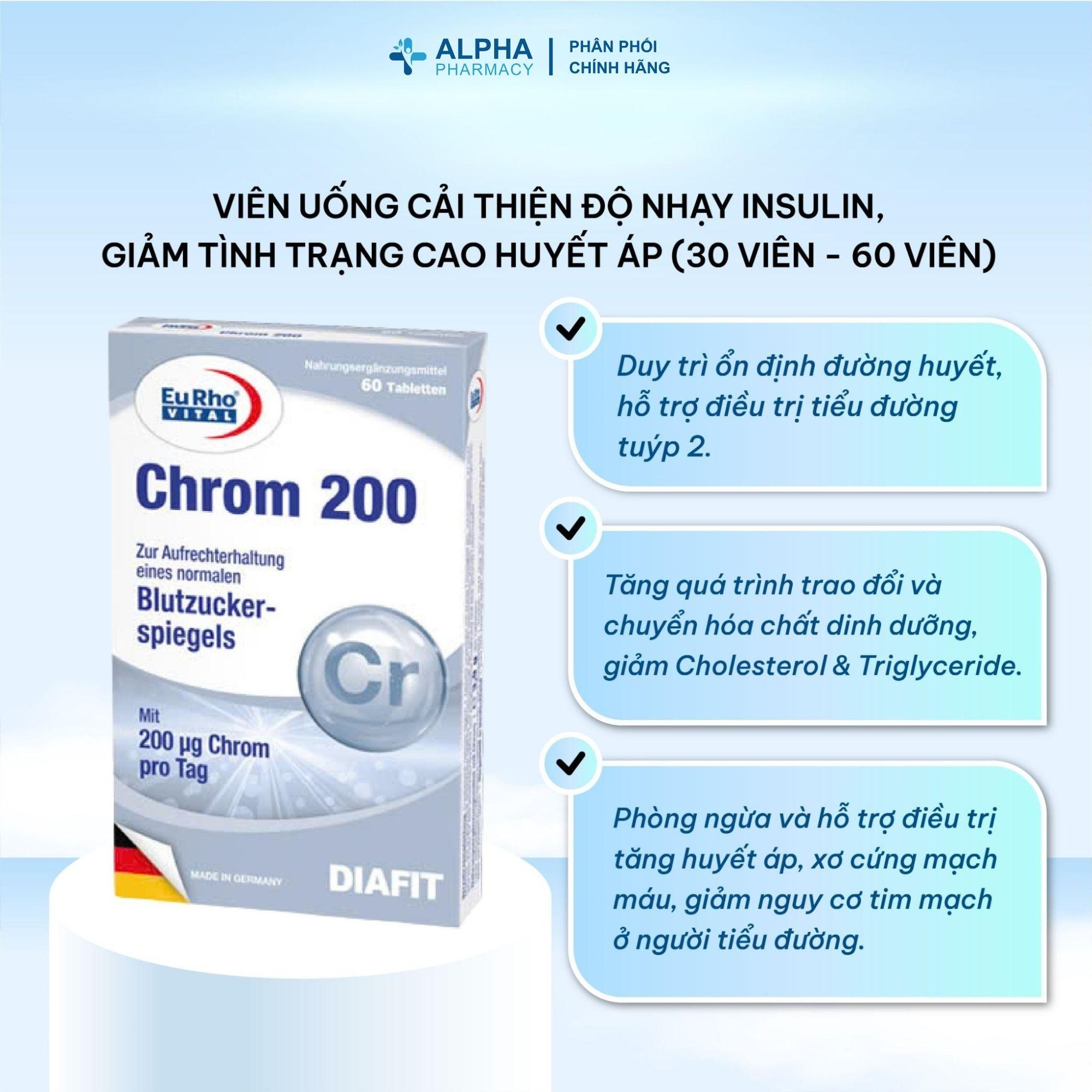 Thực Phẩm Bảo Vệ Sức Khỏe Eurho Vital Chrom 200 Cải Thiện Độ Nhạy Insulin, Giảm Tình Trạng Cao Huyết Áp