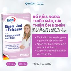 Viên Uống Bổ Sung Vitamin Cho Bà Bầu EuRho Vital EISEN+JOD+FOLSAURE Hộp 30 Viên/ Hộp 60 Viên – Bổ Sung Sắt Hạn Chế Tình Trạng Thiếu Máu, Giúp Thai Nhi Phát Triển Khỏe Mạnh, Hoàn Thiện Cấu Trúc Não Bộ.