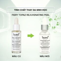 Tinh chất Teana Fiery Topaz Rejuvenating Peel là một sản phẩm thay da sinh học đặc biệt có sự kết hợp giữa Blue Retinol và các loại AHA từ trái cây. Sản phẩm sẽ nhẹ nhàng lấy đi tế bào chết, lớp sừng và bụi bẩn mà không hề khiến da bị kích ứng.