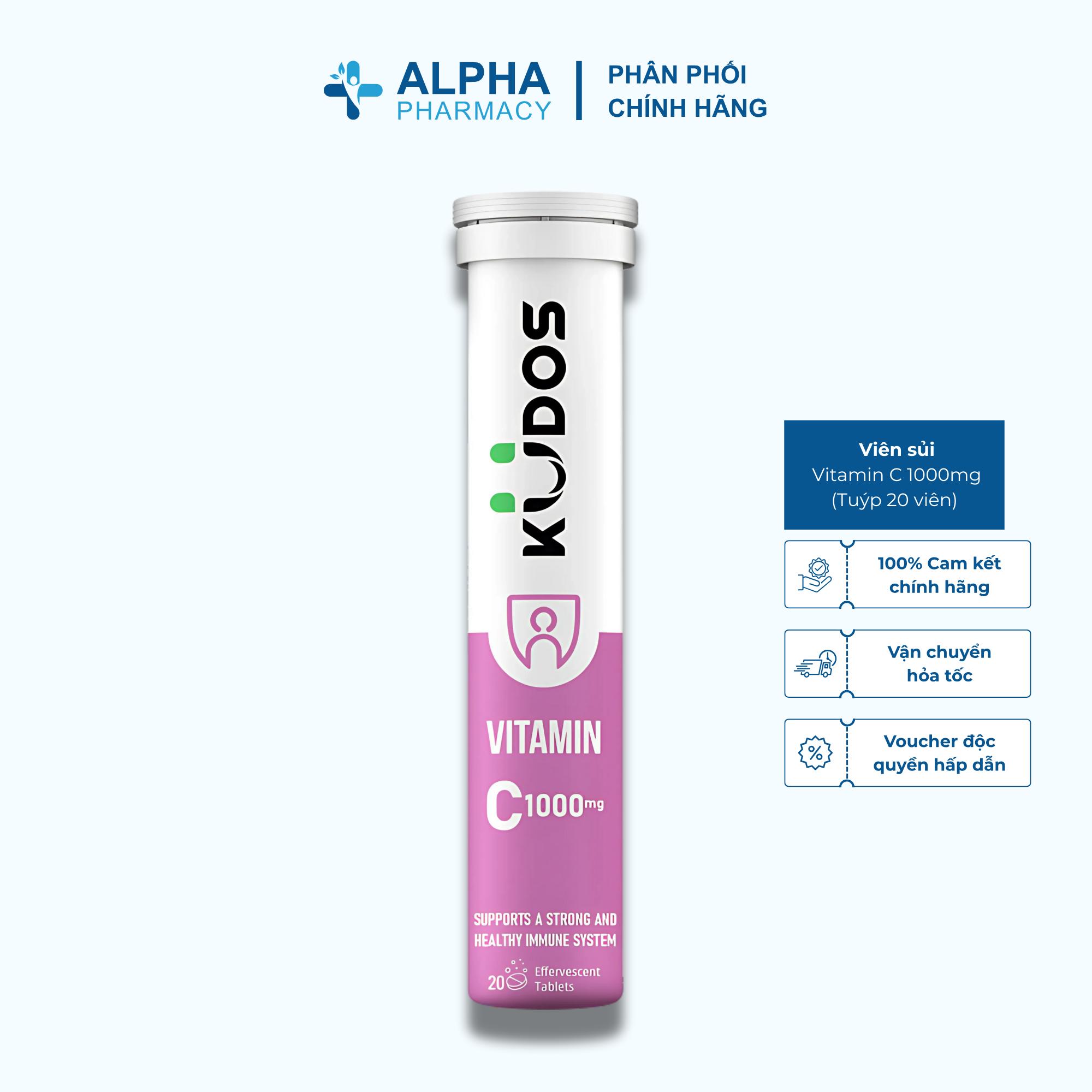 Viên sủi Kudos Vitamin C 1000mg bổ sung vitamin C cho cơ thể (Tuýp 20 viên)