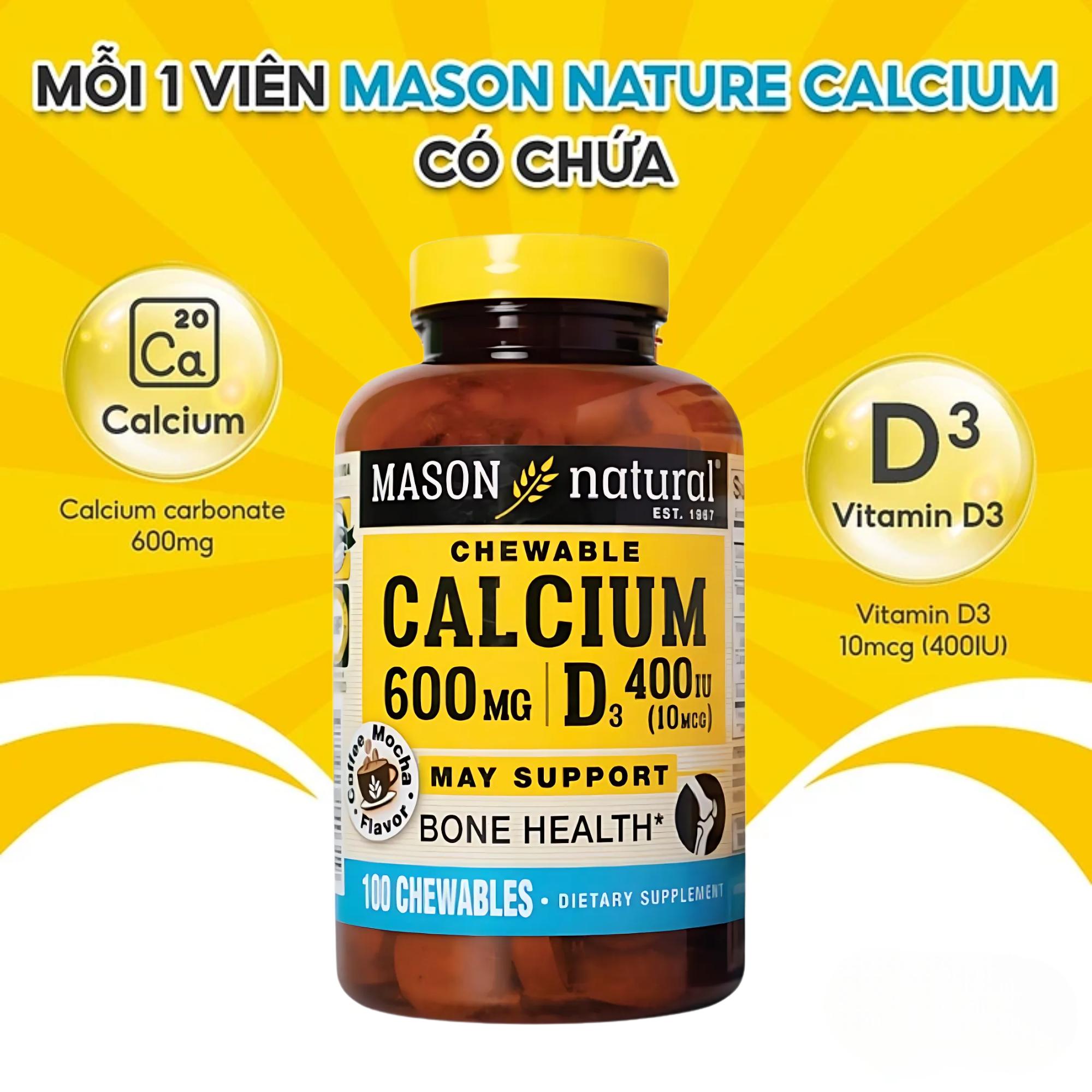 Viên Uống Hỗ Trợ Xương Khớp Mason Natural : Phụ nữ mang thai, phụ nữ thời kỳ đang cho con bú, người vận động mạnh, người cao tuổi…là những nhóm đối tượng có nguy cơ cao mắc các vấn đề về xương khớp do thiếu hụt canxi (Calcium). Trong trường hợp này, sử dụng 1 viên Calcium 600mg + D3 của Mason mỗi ngày, sẽ là giải pháp hữu hiệu giúp hỗ trợ tăng cường sức khỏe xương khớp.