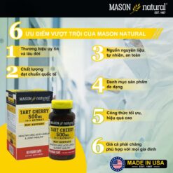 Viên Uống Bổ Sung Mason Natural Tart Cherry 500mg Hỗ Trợ Sức Khỏe Xương Khớp Và Giấc Ngủ