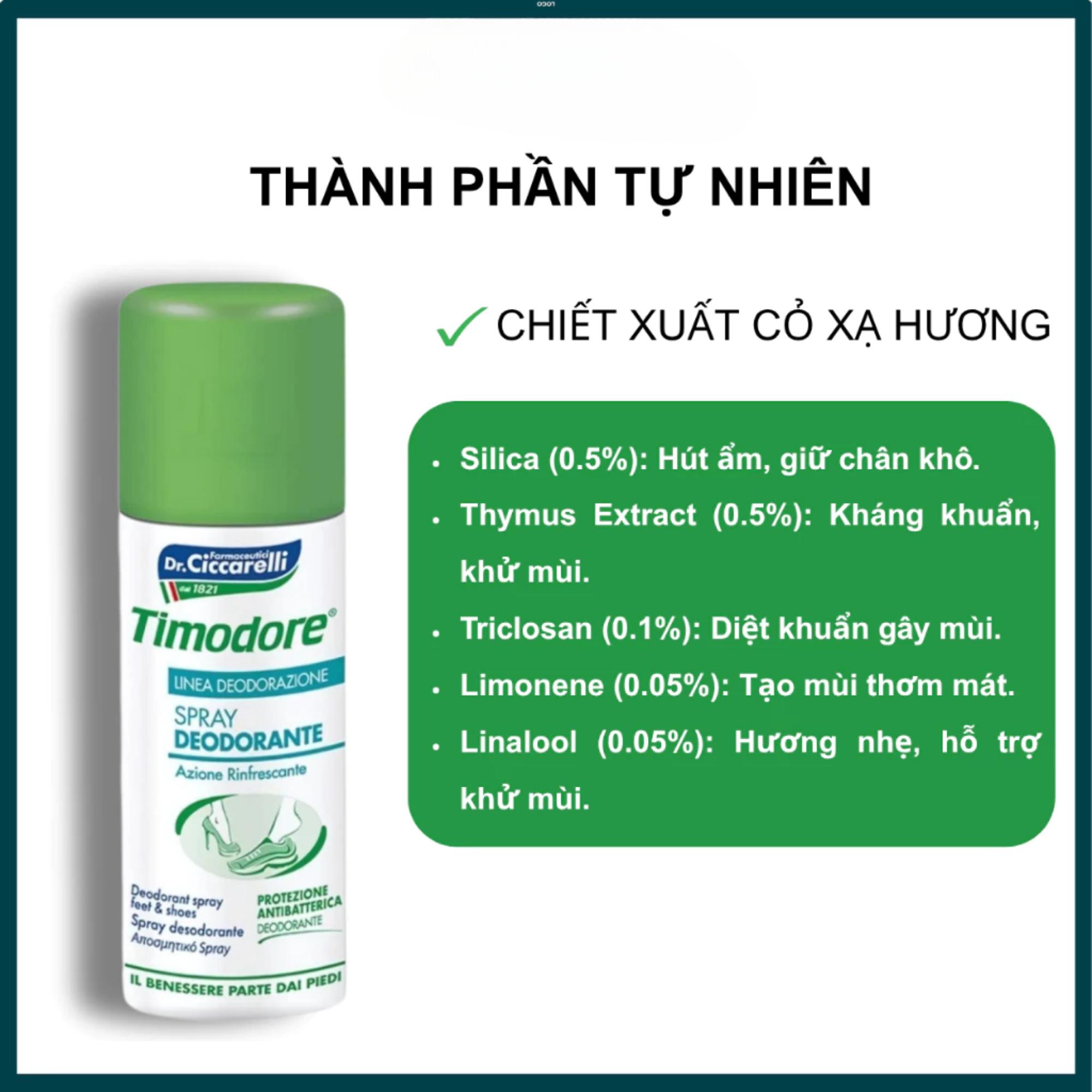 Xịt Khử Mùi Timodore Deodorant Spray Cho Chân Và Giày – 150ml